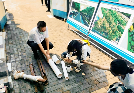 项目经理郭春华在采访中对楼本体、室外景观改造及项目整体情况做了介绍。针对旧改工程的项目性质,施工前项目部就派专人对小区业主进行“六治七补三规范”综合整治内容的宣讲,进行入户民意调查。在施工改造过程中,项目全员极力解决遇到的各种问题,尽量减少噪音扰民,确保厨卫改造时业主们能有正常的生活用水、正常如厕,进出车辆不受道路改造影响安全出行,注重施工中的环境保护,严格遵守文明施工要求。