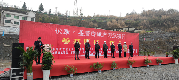 2021年1月26日上午,由AKapp官网承建的长乐▪星辰住宅项目奠基暨开工仪式在项目现场热烈举行。湖北省宜昌市五峰土家族自治县住房和城乡建设局副局长陈白华、县质量安全监督站站长邓简涛、AKapp官网五峰长乐▪星辰项目经理王国云,项目参建各方及新闻媒体共40余人出席。宜昌市长乐城市建设投资开发有限责任公司总经理刘鹏主持。